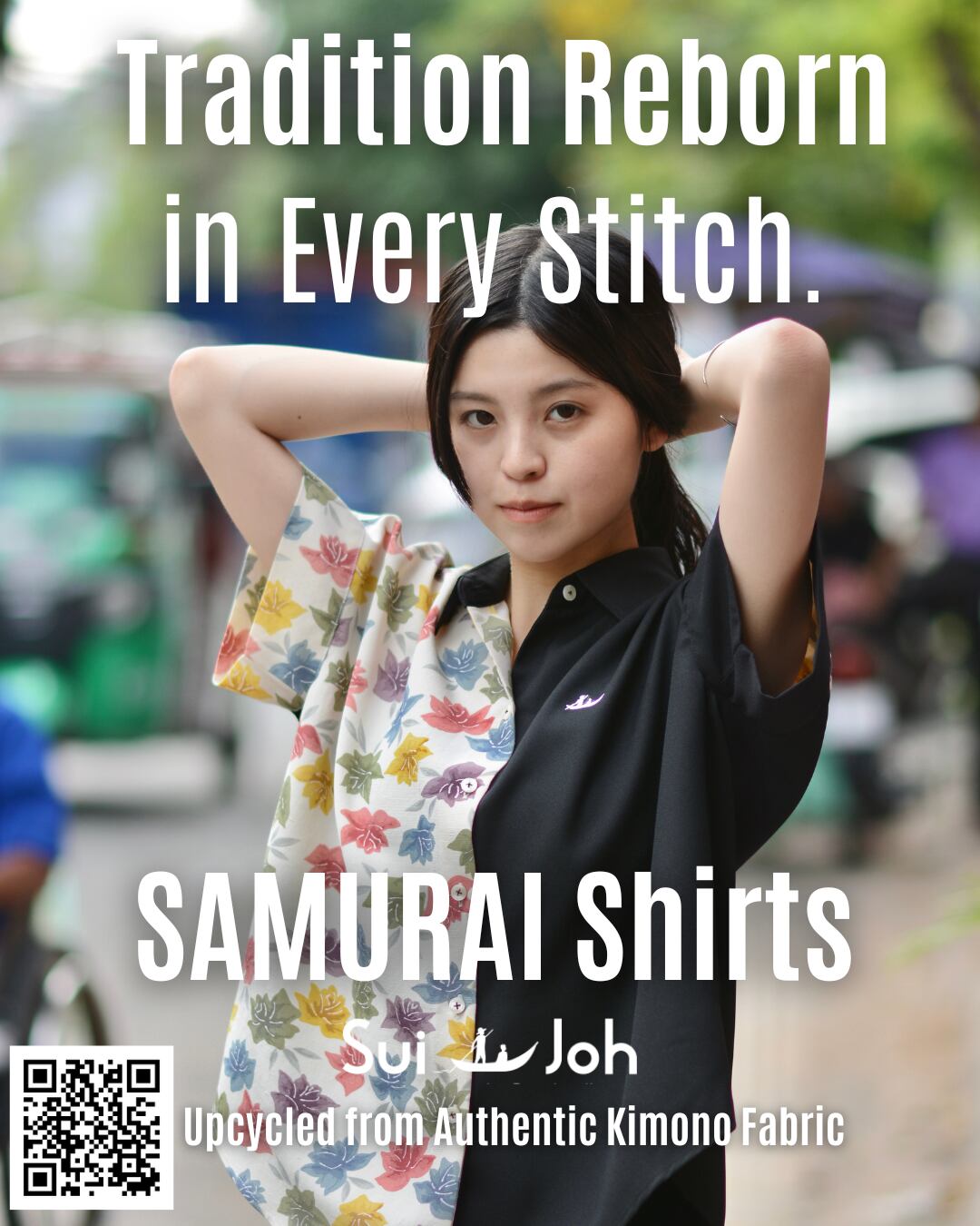SuiJohは、単なる“エスニック風ファッション”でも“途上国支援”でもありません。ファッションとして本気でかっこよく、日常にフィットするものを、誇りを持って届けたい。カンボジアの伝統布「クロマー」や着物のアップサイクル、現地アーティストとのコラボなど、アジアの文化と技術を融合させ、“作る人”にも“着る人”にも、小さな誇りとストーリーが届くものづくりを追求しています。